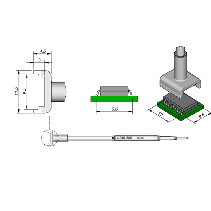 JBC原装C245-305烙铁头 C245305烙铁芯 解析图